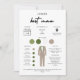 Apresentando o Cartão de Informações de Festa de casamento Moderno do Melhor Homem - seu companheiro essencial para um dia de casamento perfeito e na moda. Feito com precisão, esta carta combina elegantemente o sentimento sincero com detalhes vitais, assegurando que seu melhor homem esteja perfeitamente preparado para o seu papel. Este sofisticado cartão informativo apresenta um design minimalista contemporâneo, adorado com tipografia elegante que complementa qualquer tema moderno do casamento. A paleta de cores cuidadosamente curada se harmoniza lindamente com a festa noiva, adicionando um toque de elegância ao seu dia especial. Informações importantes, como a data do casamento e o local de casamento, são exibidas de forma destacada, fazer que seja fácil para o seu melhor homem rastrear detalhes importantes. Além disso, o cartão inclui detalhes sobre o traje da equipe do noivo, desde estilos de smoking a esquemas de cores, garantindo uma busca coesa e elegante para suas fotos de casamento. Personalize a sua mensagem com uma nota sincera que expressa gratidão e apreço pelo apoio e amizade inabaláveis do seu melhor homem - um perfeito apetite que ele apreciará para sempre. Perfeito para as propostas de padrinhos de casamento do melhor homem ou como parte de um kit de propostas de festas nobres, este cartão de informação é uma ferramenta indispensável para qualquer noivo que queira tornar seu dia de casamento perfeito. Elevem o vosso planeamento de casamento com o Cartão de Informação de Festa de casamento Moderno do Melhor Homem, hoje.