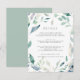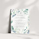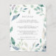 Projetado para coordenar com a nossa coleção de casamento Mountain Meadow, este elegante cartão de informação botânica do primavera apresenta uma fronteira de folhagem verde e flores violetas roxas cercando seus principais detalhes de casamento, como acomodações de hotel, informações de recepção bem-vindas, site e muito mais. Adicione seu texto personalizado usando os campos fornecidos e use a função Personalizar para ajustar fontes, tamanhos e espaçamento.