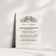 Projetado para coordenar com as nossas coleções de convites para o casamento Deco Flourish, este cartão simples e chic apresenta letras negras nítidas em uma mistura de blocos deco e tipos de script, adornada com uma ilustração florescente da safra ornamentado no topo. Substitua o texto da amostra pelos detalhes chave da sua celebração do casamento. Que informações incluir em um convite de casamento? Considere detalhes como acomodações de hotel, códigos de grupo, transporte, instruções, informações de recepção de boas-vindas e sua URL do site de casamento.