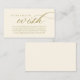 Celebre o início de sua jornada junto com o nosso elegantemente amarelo de ouro feito "desejo de lua de mel" carta de convite de casamento. Apresentando uma sofisticada mistura de escrituras modernas e atração romântica, cada cartão é meticulosamente projetado para transmitir a essência do seu dia especial. Perfeitamente adequado para casais que buscam uma forma única de compartilhar seus sonhos de lua de mel, este cartão convida seus entes queridos a contribuir para experiências inesquecíveis. Seja aninhado em um envelope luxuoso ou apresentado ao lado de seus convites de casamento, nosso cartão adiciona um toque de encanto à sua celebração, prometendo memórias queridas que duram uma vida inteira. Projetado por TeeshaDerrick.