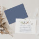 Este cartão de acompanhamento de desejo de lua de mel floral da floresta selvagem é perfeito para um casamento rústico. Este design apresenta flores silvestres brancas e azuis pintadas à mão com aquarela e folhagem verde.
