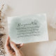 Este cartão de fechamento de desejo de lua de mel verde e branco com caligrafia é perfeito para um casamento simples. O design apresenta uma linda fonte preta em caligrafia em um fundo verde e branco para embelezar seu evento.