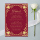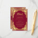 Este cartão de cerimônia de noiva e ouro, elegante, com ar vintage, tem um quadro de ouro vintage com decorações barrocas de ouro falso em fundo burgundy. O título Detalhes é escrito em dourado falso, em uma escrita caligráfica elegante. Todo texto tem uma cor de ouro semelhante à decoração dourada das bordas. Você pode incluir detalhes sobre a recepção, as acomodações, as direções, o registro, o site do casamento e muito mais. A safra, quadro de ornamentado, baseia-se numa antiga ligação francesa ao cobrir do livro, de Georges Mercier (1885-1939) - Madame de Maupin, por Teophile Gautier, edição de 1911, agora no dominio público.