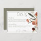 Este moderno, mas rústico, design de detalhes de casamento apresenta um buquê de canto de pessegueira, roxas, terracota, flores marrom e branca. O fundo é branco com uma imagem fina verde-sábio; o fundo é um verde-sábio macio. Você pode personalizar este cartão com QUAISQUER informações que seus convidados precisem - instruções, acomodações, traje, opções de menu, etc. Esta design faz parte da Rustic Terracotta Rust Flowers Wedding Suite de cartas criadas pela Simplesmente Farmhouse Press.