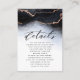 Design de casamento etéreo com névoa ombre azul-marinho, com textura de fundo desbotada com lavagem de aquarela pintada à mão, veias com aparência de folha de ouro rosa, e trilhas de pontos de confete e bordas. Um visual moderno e tendência para qualquer estação, com paleta de cores sonhadoras e suaves: preto, azul empoeirado, cinza, branco e dourado rosa, com uma fonte de letra manuscrita chic e popular - Cartão de inclusão de detalhes de casamento personalizado!