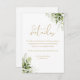 Cartão De Informações Detalhes de Casamento de Dourado Script Chic Flora
