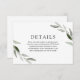 Cartão De Informações Detalhes de casamento de folhas verdes elegantes d