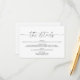 Simples cartão de detalhes de Casamento Minimalista. Personalize o texto personalizado acima. Você pode encontrar itens de coordenação adicionais em nossa coleção "Simples de Script Mínimo de Black & White Wedding". ***POR FAVOR, NOTA: TODA A PALAVRA, TEXTO E COR DE FUNDO É EDITÁVEL. Você pode alterar todas as palavras e também pode alterar a cor do texto. Para itens que tenham um fundo colorido, você também pode alterar a cor para corresponder ao texto. Basta clicar em "Editar Ferramenta de Design" para fazer alterações.