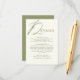 Design apresenta um monograma elegante de folhas floridas com tons sutis de musgo verde. A cor exude uma vibração natural e serena, criando um belo e harmonioso convite para um casamento.