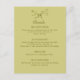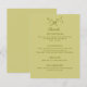 Cartão de detalhes de casamento em chartreuse e verde oliva com tipografia inspirada em vintage e ilustração desenhada à mão de aves com um laço.