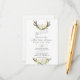 Um design rústico e boêmio para eventos especiais, quase para todas as estações! Este design apresenta galhadas de veado, buquês de flores brancas em aquarela, creme, flechas com as mesmas flores e iniciais nas costas, buquê floral em fundo branco. Use a ferramenta Personalizar para adicionar suas informações. Para mais, visite minha Coleção de Galhadas Florais Brancas e Creme.
