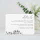 Coordene o seu cartão de gabinete de detalhes do bloco de quarto do hotel ao seu convite de casamento de linha do horizonte. Adicione sua própria foto ao verso e personalize o texto para torná-lo seu. Insira a ferramenta design do Zazzle para mais personalização, como posicionamento de texto ou para remover a foto na parte traseira.