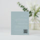 Compartilhe informações importantes de casamento em estilo com este cartão de detalhes aqua empoeirado da coleção Low Tide by Marinho Road Creative. Apresentando um texto branco minimalista e um código QR, é perfeito para casamentos costeiros ou de destino com uma paleta de cores suave e inspirada no oceano.