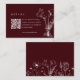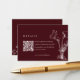 Compartilhe as informações essenciais do seu casamento com facilidade usando este Cartão de Acompanhamento de Código QR de Detalhes do Casamento Floral Burgundy Elegante. Com belas flores em burgundy, este cartão foi projetado para complementar o conjunto completo do seu casamento. Adicione um código QR escaneável que direciona diretamente para o site do seu casamento, acomodações, programação, lista de presentes ou direções. Totalmente personalizável e impresso em papel cartão premium, este cartão de acompanhamento oferece uma maneira moderna e elegante de manter seus convidados informados.