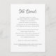 O tradicional e elegante convite de convite para visitantes para o casamento contém um cartão com um script de tipografia de estilo vintage em preto e branco simples. A placa é totalmente personalizável - todas as cores podem ser alteradas, tanto no texto quanto no plano de fundo.