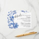 "A Influência Asiática Chinoiserie Floral com Pássaro em Azul e Branco, Detalhes do Casamento Cartão de Recepção." Personalize com as informações de casamento que você precisa comunicar com sua família e amigos. Um roteiro elegante "detalhes" é emparelhado com uma aquarela acrílica pintada manualmente, um par de pássaros do estilo chinês azul e branco em uma árvore com flores estilizadas é moderno e moderno. Toda obra de arte e design foi criada por uma artista e designer internacionalmente licenciada, Audrey Jeanne Roberts, copyright.