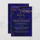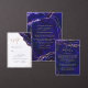 Design de casamento moderno. Geodo de aquarela com elementos de arte digital, tons de azul profundo, roxo, ouro rosa e ouro (ouro não é ouro real, mas cor), preto. Caligrafia elegante. Elementos geométricos. Negrito, moderno, contraste, saturado, notável, único.