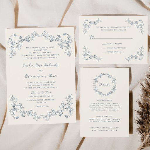 Rustic Vintage Blue Floral Line Art WeddingCriado por MOONDAISY STUDIO