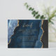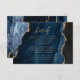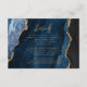 Este elegante e moderno cartão de detalhes de casamento contém um marinho azul-d-água, uma imagem de fundo agata, aparada com falso brilho dourado. O título aparece no script de escrita manual, com texto personalizável abaixo na fonte de impressão dourada. O verso apresenta um design azul-marinho e um agate-ouro correspondentes.