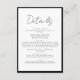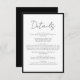 Cartão de Gabinete Detalhes do Casamento de Script Branco Simples de Preto