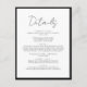 Cartão de Gabinete Detalhes do Casamento de Script Branco Simples de Preto