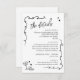 Este convite para o casamento apresenta um design de rabiscos brancos e divertidos, fazer um convite único e divertido. A frente mostra os nomes dos casais em uma fonte moderna, acompanhada de rabiscos desenhados à mão de artigos comemorativos como óculos de vinho, anéis e um bolo. O convite pode ser tornado ainda mais vibrante mudando a cor dos emblemas e do texto do rabisco, acrescentando um toque personalizado a esse charmoso design. Você pode editá-lo clicando no botão "Editar usando a ferramenta design".