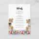 Se vocês dois amam dinossauros, esta divertida carta de detalhes de recepção de casamento do dinossauro é uma maneira excelente de compartilhar seu amor pelos dinossauros com seus convidados de casamento. Engraçado noiva T-Rex e noivo num prado de flor silvestre pré-histórico colorida para trazer diversão e alegria para o seu dia de casamento. Caligrafia tipográfica branca moderna com fácil personalização de modelos para que você possa adicionar a localização da recepção de casamento e as instruções úteis para o convidado. Nosaurus Rex noiva e noiva em tons de terra castanhos com flores de aquarela em cor azul roxa, cor-de-rosa, laranja e tons verdes. Arte original da artista Catherine Sweetman Ideal para a recepção no dia do casamento ou janto de ensaio. A suíte de casamento combinando inclui tudo que você precisará na sua divertida viagem de casamento