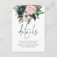 Detalhes do Casamento do Código QR de Florais Emerald e Blush. Lindas flores estão no topo com um roteiro elegante para o cabeçalho. Adicione o seu código QR que irá para o seu site de casamento no verso para permitir que os seus convidados pesquisem e visualizem todos os detalhes, como instruções e informações de alojamento.