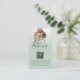 Detalhes do Sage de Casamento de Código QR do Script de Sobreposição de Foto. Pequeno e conveniente para juntar seus convites. Convide seus convidados para ver todas as informações de que precisam, como acomodação e instruções, através do seu código QR para o seu site de casamento. Este design verde sábio moderno com sua foto favorita atrás de uma camada de cor graduada, tem uma tipografia informal em preto para o título principal Detalhes e o resto do texto que você pode personalizar facilmente. Substitua a foto de exemplo por sua orientação de paisagem favorita.