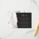 A borda esquerda deste elegante cartão de detalhes de casamento moderno apresenta uma borda branca e cinza de aquarela, aparada com falso brilho de ouro rosa. O título está em um script de escrita manual, com o texto personalizável abaixo na fonte de impressão cor-de-rosa rosa num fundo preto de ardósia escura. O lado inverso apresenta um design agate correspondente.
