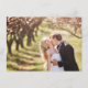 MODELO. Personalize com as informações de casamento que você precisa comunicar com sua família e amigos. Uma elegante linha de ouro, borda fina e divisor com escrita manuscrita com "detalhes". No verso, uma imagem de sessão de fotos de noivado. Arte e design pela artista e designer internacionalmente licenciada Audrey Jeanne Roberts, copyright.