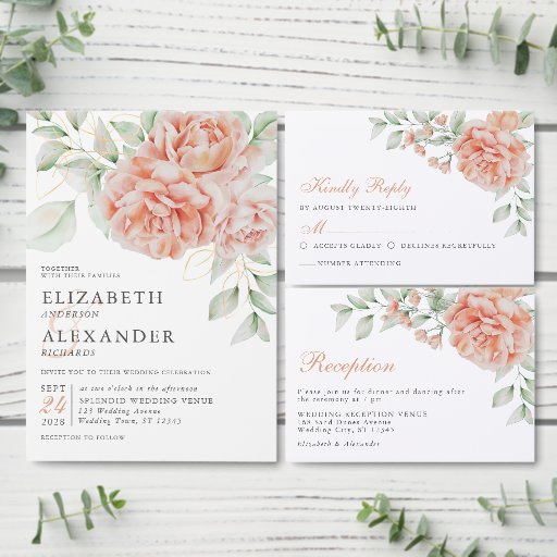 Elegant Peach Floral Wedding SuiteCriado por Connie R.