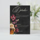 Entra num reino de elegância refinada com o nosso cartão floral escuro e moderno de detalhes do casamento. Concebido para cativar os sentidos, este design ostenta um fundo negro impressionante adormecido com uma explosão de flores autóctones em laranja queimada, cor de laranja queimada, matizes cremosos e toques de ouro luxuoso, complementados por uma folhagem verde-oliva exuberante. O texto cremoso adiciona um toque de romance ao fascínio geral. Abrace a opulência da estação e dê o tom para o seu dia especial com este design, que deixa uma impressão duradoura nos seus convidados. Criado pela imprensa simplesmente de farmácia.