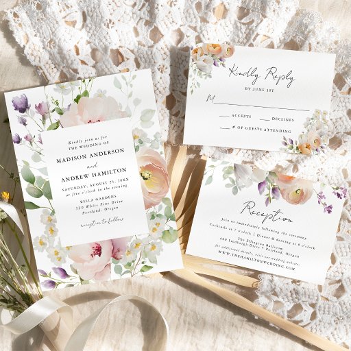 Cartão De Informações Detalhes do Casamento Floral de Primavera Delicado