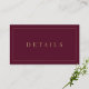 Avise seus convidados sobre seus detalhes de casamento com este cartão de detalhes personalizável. Apresenta uma tipografia simples, caligrafia moderna e uma simples fronteira. Personalize este cartão formal de detalhes do casamento adicionando seus detalhes do casamento. Esta carta de detalhes minimalista é perfeita para casamentos, chás de panela e muito mais. Sinta-se à vontade para me enviar mensagens com qualquer pergunta relacionada a design - terei todo o prazer em ajudar!