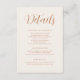 Moderno Terracotta queimou laranja e creme bege Detalhes de casamento Cartão de modelo fácil de usar em elegante roteiro de tipografia moderna. Perfeito para adicionar todos os detalhes da cerimônia de casamento e da recepção, além de informações sobre acomodações e outras informações para ajudar seu convidado a se preparar para o dia especial. Um na moda e um complemento útil ao seu convite de casamento, um simples design minimalista para complementar a sua celebração sem falhas. Desenvolvido pela artista Catherine Sweetman, este cartão de cerimônia captura a essência de sua celebração, convidando seus entes queridos a se juntar a vocês em uma celebração quente e inesquecível do amor.