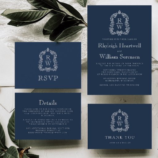Classic Monogram Crest Navy Blue Wedding SuiteCriado por Akhates Designs