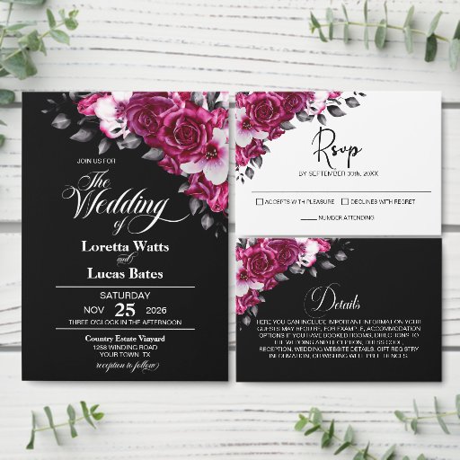 Rose Floral Black Wedding StationeryCriado por Merry D