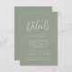 Cartão De Informações Detalhes do Casamento Verde da Sage com Script Sim