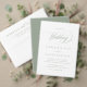 Cartão de Gabinete de Detalhes do Casamento Verde da Caligrafia Elegante