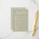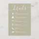 Este simples cartão de detalhes da cronologia do casamento com detalhes do casamento com um código QR escaneável e cronologia simples, com um estilo Verde Sage, e minimalista, letra de caligrafia, com detalhes da recepção e um monograma elegante no verso.