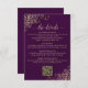 Cartão De Informações Detalhes do Código QR de Casamento Dourado e Roxo