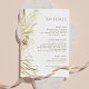 Trendy watercolor floral branco, palma tropical bronzeada, folhagem do deserto terrestre, e detalhes do convite para o casamento de grama pampas inserem modelo de cartão com tipografia moderna sobre um claro fundo branco. +++++ Adequado para um jardim boêmico de verão. fazenda rústica ou destino de praia elegante casamento contemporâneo elegante.