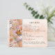 Cartão com a recepção e as acomodações para o convidado. Belo design com uma borboleta laranja tocando miçangas de pérolas brancas em forma de coração. Outra borboleta se mistura no buquê das rosas laranja-claro e rosa. Laranja é a cor do tema na imagem do papel pergaminho. Converta isso para qualquer ocasião. Adicione uma foto e/ou altere o texto.