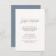 Bonito caligrafia detalhes do convidado de casamento apresenta branco macio com tom cor de ouro pálido na frente, e cor azul empoeirada romântica na parte de trás do cartão. Convites e acessórios de correspondência podem ser encontrados nesta coleção.