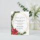 Trendy rustic natal, natal, natal, cartões de hóspedes com moldura geométrica dourada e tipografia com sinos de trenó, flores de poinsettia, holly, concha e pinheiro.