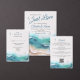 Um elegante design de verão para sua praia ou casamento de destino! As ondas e aves marinhas que caem e a escrita moderna dão a estas o perfeito toque escapista para a maior aventura da sua vida. Excelente para um casamento no México. Solicite seus convites impressos e suprimentos de festas ou faça o download de seus convites digitais agora por um dia que eles nunca esquecerão!