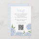 Este lindo cartão azul de cerimônia floral hydrangea apresenta flores azuis de cor aquática e seu texto personalizado. O reverso é uma faixa de aquarela fina, que pode ser apagada para uma parte traseira de cor sólida. Use a modelo para preencher suas informações. O recurso "Personalizar mais" pode ser usado para alterar a fonte (tamanho, estilo, cor) e adicionar mais linhas de texto, alterar o layout e adicionar texto ao verso.