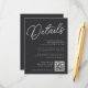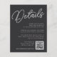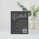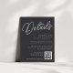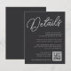 Um cartão completo para seus convites de casamento, este cartão Detalhes da petição fornece três campos de texto personalizados para seus detalhes de casamento, site e um código QR para RSVPs ou informações adicionais. Projetado para corresponder à nossa coleção de casamento Black & White Oversize Script. A nossa cinza de Cinza faz uma declaração clássica com letras brancas nítidas sobre um fundo preto suave.