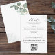 Elegante eucalyptus greenery detalhes do casamento cartão com o site de casamento rsvp e modelo de código QR. Com lindas folhas de cor aquosa de eucalipto e um delicado esquema de cor verde. Este cartão de detalhes é um adorável acompanhamento da sua papelaria de convites para o casamento. este design apresenta um simples e elegante site detalhado, informações sobre caligrafia eucalipto, moderno endereço web aquarela, rsvp online theknot.com foliage, rsvp código QR verde minimalista, verde botânico elegante e moderno, com endereço web de folhagem verde-aquarela, resposta de convidados da internet, uma rsvp online site, elegante Watercolor floral moderno
